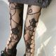花潮花汐复古玫瑰镂空日系性感原宿侧提花网袜连裤袜丝袜子女黑丝