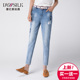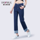 德亿新丝路卷边牛仔裤女直筒裤2017春夏宽松阔腿裤韩版九分牛子裤