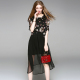 歌瑞莲欧洲站淑女网纱透视拼接系带短袖连衣裙A字长裙 2017夏新品