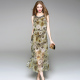 歌瑞莲欧美女钉珠装饰圆领雪纺印花松紧腰连衣裙 2017夏新品长裙
