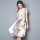 歌瑞莲2017春装新款亚麻女装连衣裙复古女长袖印花女装短袖连衣裙