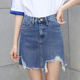 牛仔裙半身裙女春夏2017新款百搭学生高腰破洞不规则短裙a字裙子
