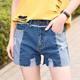 破洞牛仔短裤女复古高腰2017夏季女装撞色拼接毛边腰头宽松热裤潮