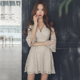 2017春装新款韩版女装名媛OL性感一字领露肩喇叭袖修身包臀连衣裙