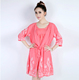 伊姿娇娜夏季新款女士梭织棉睡袍两件套吊带睡裙七分袖睡衣家居服