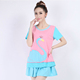 伊姿娇娜夏季新款女士针织棉短袖短裤睡衣卡通贴布可爱家居服套装