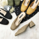 韩国东大门17夏季新款方头浅口粗跟半拖鞋大牌同款单鞋韩版奶奶鞋