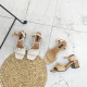 复古简约气质款荷叶花边杏色露趾女凉鞋一字扣带粗跟中跟夏季凉鞋
