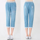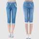 少女七分裤夏装2017新款宽松高腰中裤松紧腰初中女学生牛仔七分裤