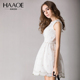 HAAOE2017春夏新款女装纯色镂空蕾丝连衣裙圆领修身无袖背心中裙