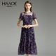 HAAOE2017春装新款圆领中袖镂空蕾丝绣花A字裙连衣裙