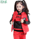 童装 女童装套装 春秋冬新款男童时尚拼接加绒卫衣三件套