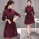 2017秋冬女装新款时尚蕾丝连衣裙单排扣修身气质长袖POLO领a字裙