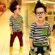 小贝潮品 童装男童装打底衫2015新款儿童条纹拼色长袖t恤春秋装潮