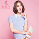 柏莉鸟 白色衬衫夏装女短袖 条纹工作服职业装免烫OL正装大码衬衣
