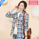 柏莉鸟纯棉格子衬衫女士长袖秋季外套韩范打底衬衣上衣寸大码女装