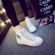 2017春季高帮帆布鞋女坡跟学生休闲鞋女鞋布鞋单鞋透气高跟鞋韩版
