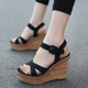 2017坡跟凉鞋女夏季新款高跟厚底防水台露趾松糕鞋欧洲站休闲凉鞋