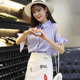 春夏装小清新百搭格子衬衫女学生韩版大码露肩蝴蝶结短袖宽松上衣