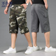 夏季男士大裤衩迷彩中裤纯棉七分裤肥佬工装短裤中老年宽松沙滩裤