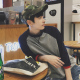 真男孩秋季新款文艺范檫肩袖撞色长袖T桖日系复古圆领TEE体桖衫潮