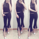 高腰开叉微喇裤女 2017夏季九分裤薄款休闲裤 性感显瘦大码阔腿裤