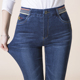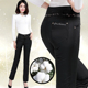 春秋牛仔裤女高腰小脚裤显瘦中老年裤子中年女裤妈妈长裤直筒加绒