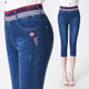 2017新款松紧腰牛仔裤女打底裤中年女裤小脚裤高腰长裤妈妈九分裤
