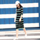 五分袖撞色条纹连衣裙 2017春夏新款显瘦打底针织包臀中长裙子女