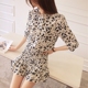 2017春夏新款复古立领连衣裙女修身显瘦包臀碎花荷叶边七分袖裙子