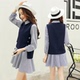 2017春夏新款显瘦A字裙学院风条纹衬衫裙+马甲两件套装连衣裙子女