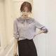 彩虹姐妹2017春夏装新款圆领荷叶边系带长袖雪纺衫 百搭打底衬衫