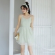 2017夏小清新浅绿色露肩露背欧根纱蓬蓬裙高腰吊带短裙女连衣裙子