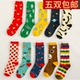 5双包邮日系原宿卡通纯棉袜子长筒男女袜情侣袜星球彩虹热气球袜