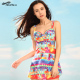 号手新款游泳衣连体裙式平角大码保守遮肚小胸聚拢带钢托温泉泳衣