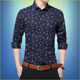 春季男士长袖衬衫韩版修身衬衣纯棉薄款青年潮印花波点碎花时尚