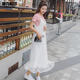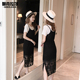 蕾丝中长裙女夏2017新款韩版显瘦性感收腰假两件连衣裙吊带裙子潮