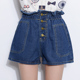 高腰牛仔短裤女薄款夏季学生热裤宽松排扣裤裙阔腿裤松紧腰沙滩裤