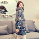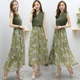 雪纺印花连衣裙2017夏新款韩版无袖V领中长款修身收腰显瘦大摆裙