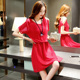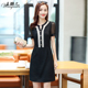 2016夏季新款女装气质修身雪纺连衣裙韩版短袖v领OL大码显瘦中裙