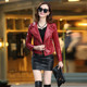 欧洲站2015秋装新款修身皮衣外套女 时尚百搭显瘦机车皮夹克大码