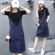 2017夏装新款时尚V领宽松显瘦牛仔裙韩版短袖两件套装连衣裙中裙