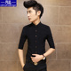 棉麻衬衫男修身型韩版七分袖潮男装寸衫青少年春秋季休闲纯色衬衣