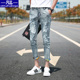夏季新款潮男士破洞时尚牛仔裤男小脚裤修身九分裤乞丐裤瘦腿男裤