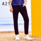 A21男装学生夏季新款2017男士修身小脚黑色牛仔裤男休闲裤子潮流