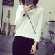 A7seven 韩版简约百搭宽松纯白色长袖T恤女大码纯棉打底衫秋装新