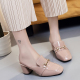 夏新款欧美时尚大牌方头粗跟凉拖鞋漆皮百搭一字拖女半拖高跟鞋潮
