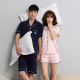 2套价恒靓情侣睡衣夏季纯棉短袖短裤薄款欧美简约运动家居服套装