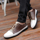 夏季男士休闲鞋英伦风低帮青年棕色真皮商务皮鞋男生运动板鞋子潮