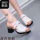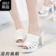高跟凉拖鞋女夏粗跟2017新款厚底百搭性感鱼嘴室外穿白色一字拖潮